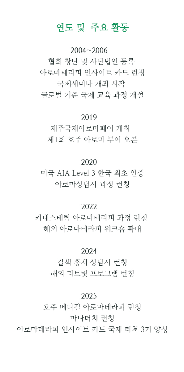 아로마테라피 과정 프리 아로마케어 프랙티셔너(입문) 과정 아로마케어 프랙티셔너(전문가) 과정 국제 아로마테라피스트 디플로마(전문 강사) 과정